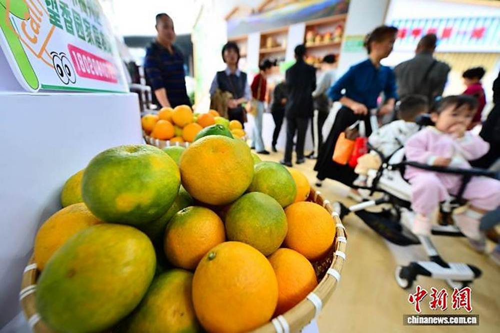 圖為展示的農林產品吸引參觀者。中新社記者 張斌 攝
