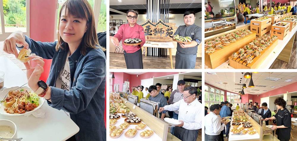 縣長一行人隨後前往文化園區內的「金獅苑」蔬食餐廳參訪。金獅苑由青年團隊經營,以蔬食料理為主要特色,並嘗試將金門在地食材與西式料理風格結合,打造具有地方特色的餐飲品牌。餐廳空間採大面落地窗設計,採光明亮,讓用餐民眾能在品嚐美食的同時欣賞園區湖畔景觀與自然環境,營造舒適且富有文化氛圍的用餐空間。餐廳負責人簡先生表示,團隊在餐點設計上嘗試將金門燒餅、貢糖與高粱等在地元素融入料理之中,希望讓顧客在味覺體驗中感受金門文化特色,未來也規劃結合音樂演出推出夜間文化餐飲活動,透過餐飲與藝文展演的結合,提升文化園區夜間活動能量,吸引更多民眾走進園區體驗多元文化氛圍。