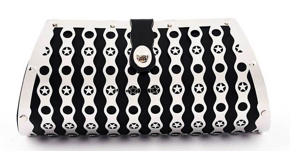 圖/以質輕彈潤的薄鋼包覆皮革,讓皮包顯得堅固又輕盈,還能保護皮件。